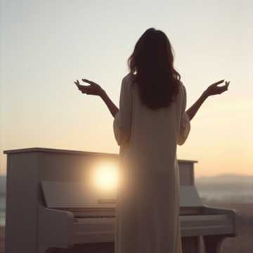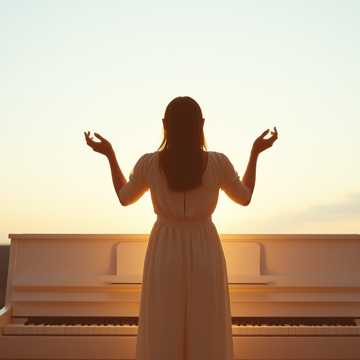 Intimate French worship ballad with gentle piano and soft pads, female vocals. Verses stay hushed and close-mic, light fingerpicked guitar joining on the second verse. Chorus blooms with warm strings and stacked harmonies, kick blooming softly on downbeats. Bridge swells in intensity with a subtle tom build, then falls back to a fragile final chorus led by a single vocal and sparse chords.•0