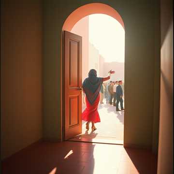 The agent plans a coherent visual narrative across all scenes, ensuring continuity in the storyline—characters who enter a door in Scene 1 appear inside the room in Scene 2.