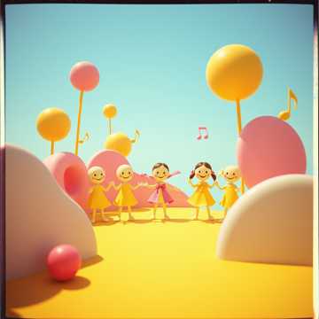 Upbeat kids’ anthem with bright acoustic guitar, bouncy Latin pop groove, and group vocals; verses stay light and rhythmic over claps and bass, chorus explodes with children’s choir, simple percussion, and playful call-and-response ad-libs; short bridge drops to handclaps and solo voice before final stacked chorus