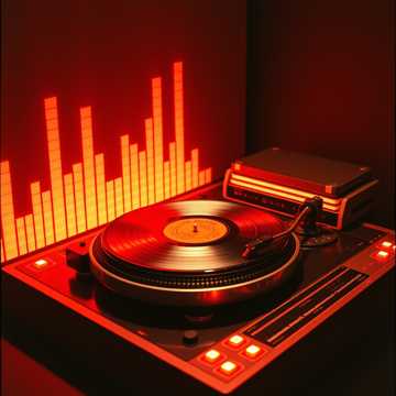 Sound design: vinyl crackle, record pops, tape hiss, DJ scratches, spinbacks, needle drops, and turntable stop effects. Use filter sweeps, EQ cuts, delay throws, and reverb tails to simulate live DJ mixing.